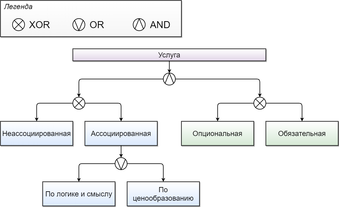 По логике и смыслу — услуга, логически связанная с другой, родительской, услугой, которая не может быть приобретена отдельно от родительской.
