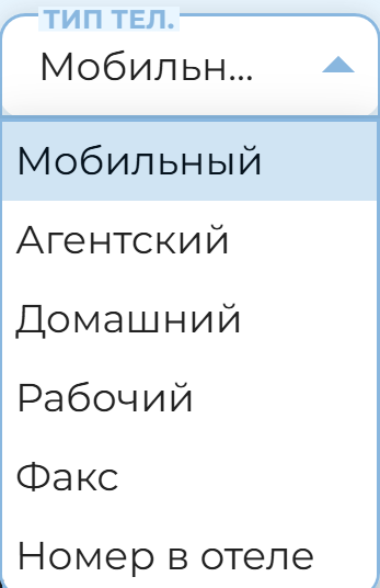- Мобильный телефон — обязателен для первого пассажира, для других пассажиров поле опционально. Пользователь не сможет сохранить заказ без мобильного хотя бы у одного пассажира с местом. Для ввода номера телефона любой страны допускается использование от 11 до 15 символов. В случае, если номер телефона введен некорректно - пользователь получит предупреждение: “Некорректно указан номер телефона. Разрешенный формат: 11-15 цифр". Опционально пользователь может добавить пассажиру телефон иного типа, выбрав тип из выпадающего списка.