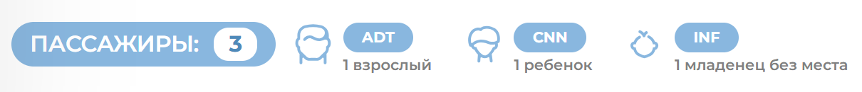 1) Строка с количеством пассажиров, используемых в поиске, разделенных по типам: