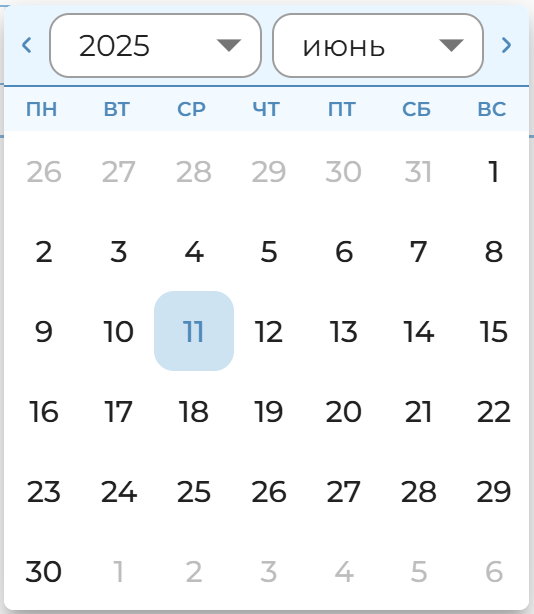 Дата туда и Дата обратно. Дата туда – обязательное поле. Пользователь может ввести дату вручную в формате ДД.ММ.ГГГГ или заполнить с помощью раскрывающегося календаря. Для выбора параметров года и месяца пользователю необходимо кликнуть на соответствующие поля в календаре и выбрать значения из открываемых списков год или месяц. Поиск авиа-маршрута ограничен на 365 дней от текущей даты.