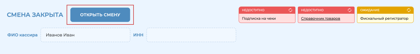 Открытие смены кассира