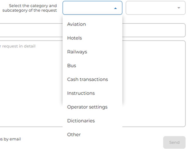 If the user selects the «other» category or «other» subcategory, the MixVel Cashier web application asks to clarify the subject of the request; this field becomes mandatory.