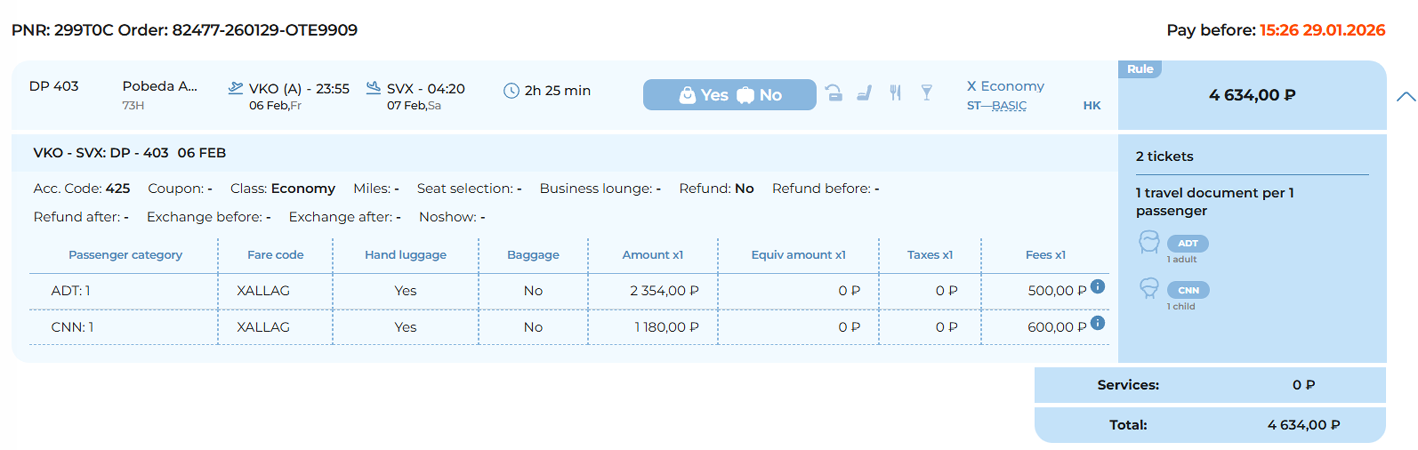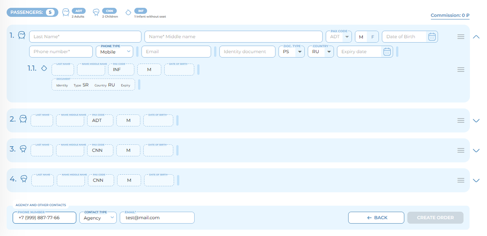 Pax Code – Pre-filled based on the data entered during the flight search. This value cannot be changed during booking creation.