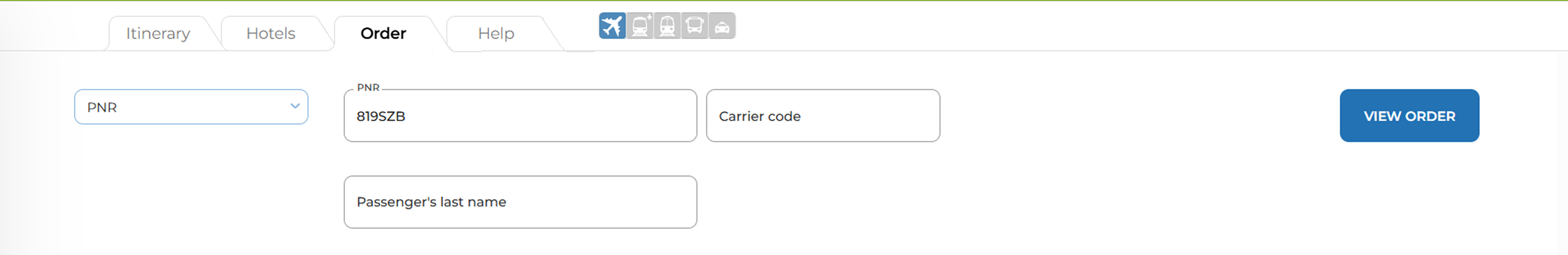 - Enter the Last name of one of the passengers from the order in the “Passenger’s last name” field.