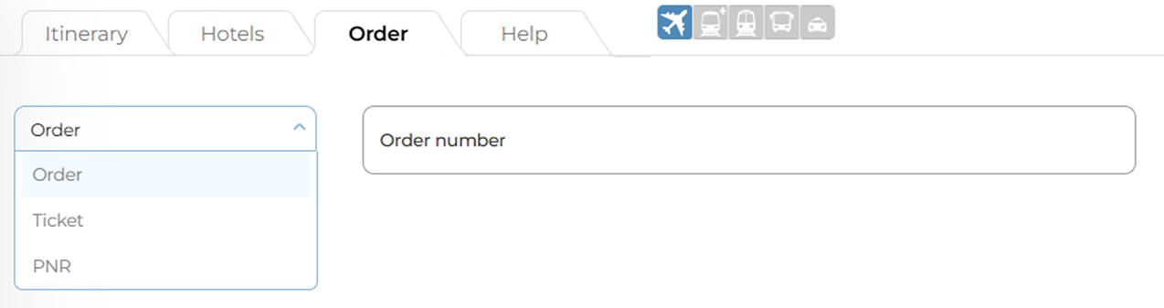 A previously created order and its associated ticket can be retrieved for viewing and management from the «Order» section using several search methods: