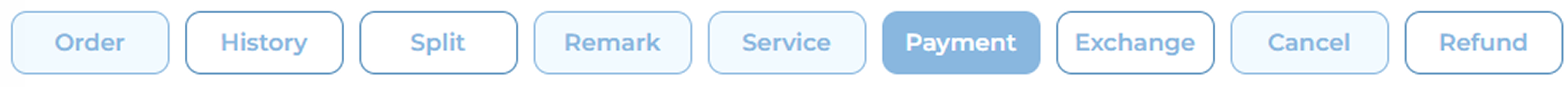 Navigating via the order management panel (e.g., accessing actions like Payment, Service, Exchange, etc.)