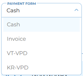When selecting the Military Transportation Document (VPD) as the payment method, the user may choose one of the following options: