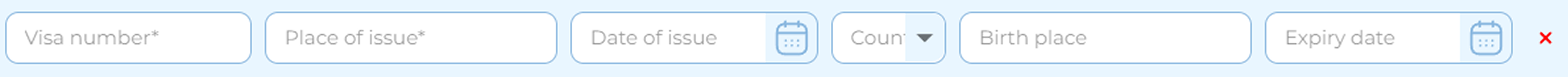 Issuing country – mandatory; enter the country code or name manually, or select from a reference list;