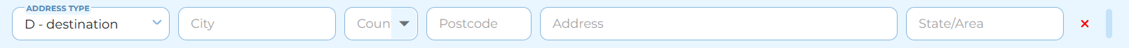 Address type – select either “Destination” or “Residence”; mandatory