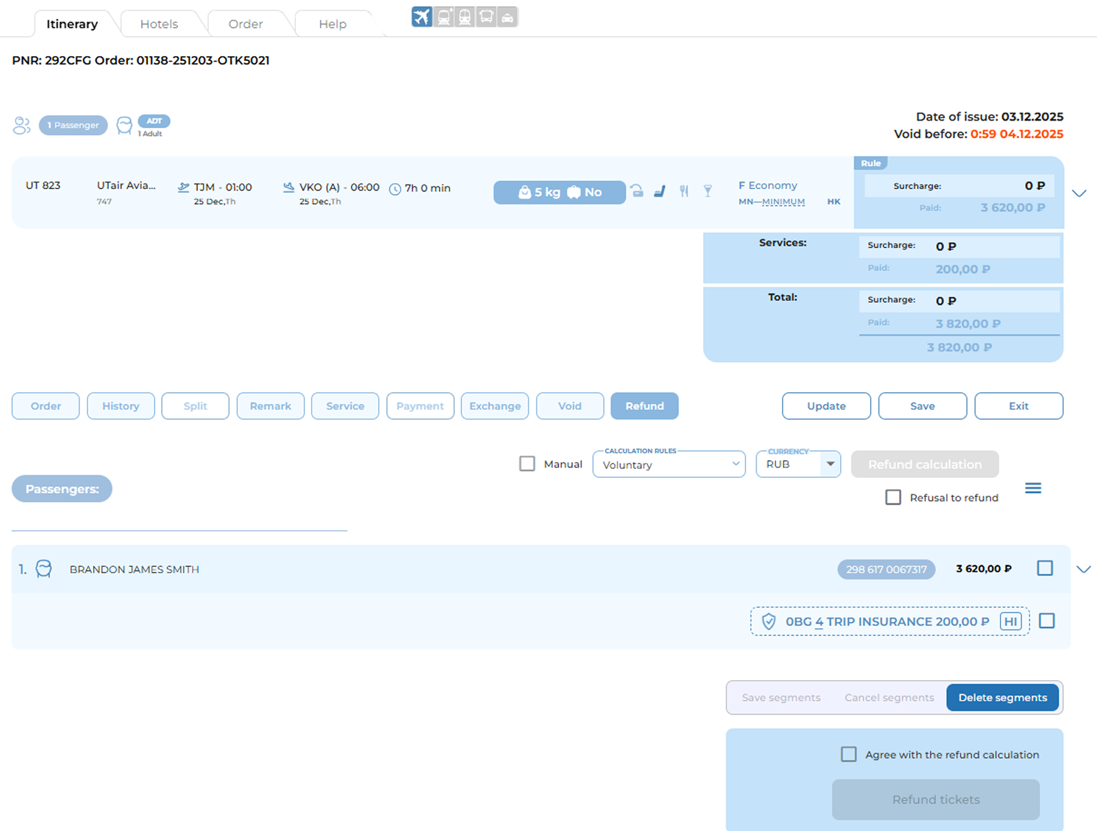 - Process a refund, subject to the fare rules of the specific service and carrier.